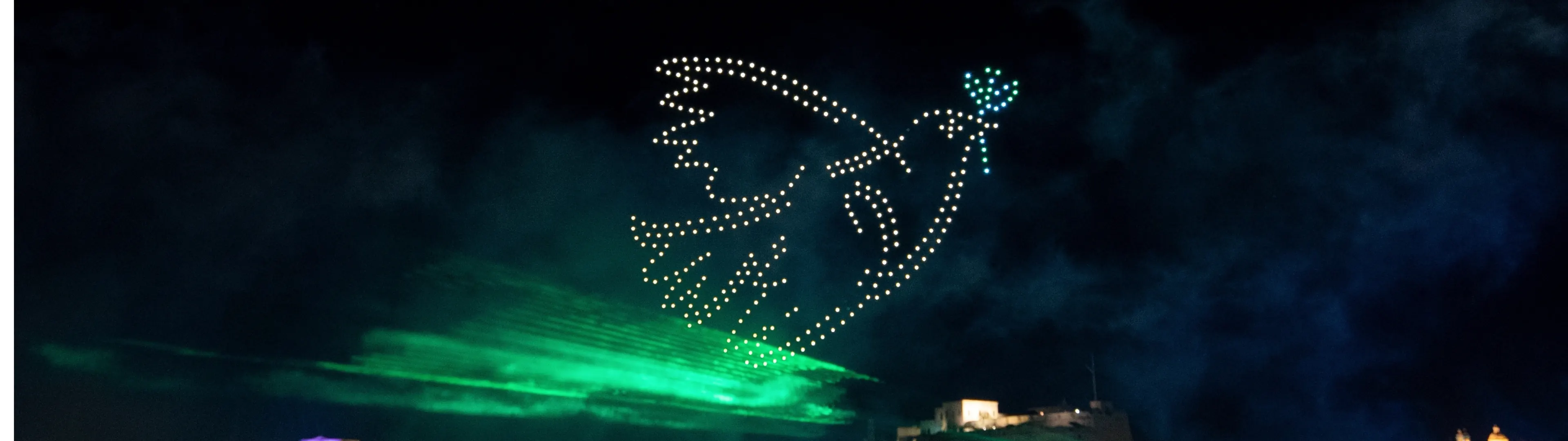 Vous recherchez une signature événementielle mémorable ? Un ballet aérien dans le ciel nocturne transforme votre message en une expérience sensorielle captivante. Les formes lumineuses sculptent l'obscurité, dessinant votre identité visuelle avec une précision millimétrée.